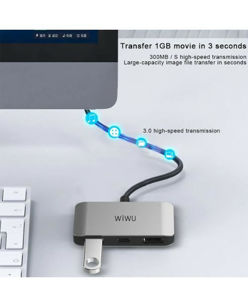 The WIWU 3-in-1 Multiport Adapter is the perfect companion for modern laptops and tablets with Type-C connectivity. With 1 × USB 3.0, 1 × Type-C, and 1 × HDMI port, it combines speed, power, and versatility into a single compact hub. Ideal for work, study, or entertainment, this adapter ensures seamless connectivity wherever you go.