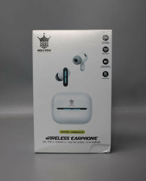 The Me & You 2 Wireless Earbuds are designed for a seamless listening experience with smart touch control for music and calls. Featuring high-quality sound, deep bass, and a built-in microphone, these earbuds are perfect for music, gaming, workouts, and daily use. The lightweight ergonomic design ensures comfort, while the compact charging case provides long-lasting battery life and portability.