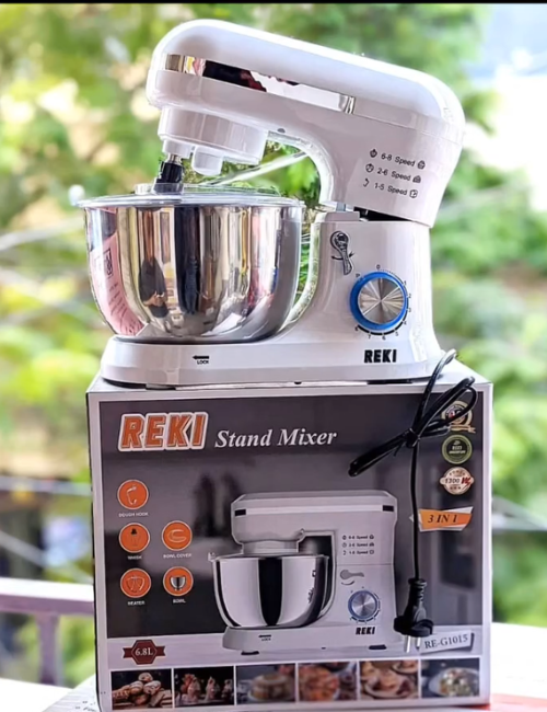 Upgrade your kitchen with the REKI 3-in-1 Stand Mixer (Model: RE-G1015) – the perfect blend of power, performance, and style. Equipped with a 1300W motor and a generous 6.8L stainless steel bowl, this mixer is built to handle everything from whipping cream to kneading dough with ease.